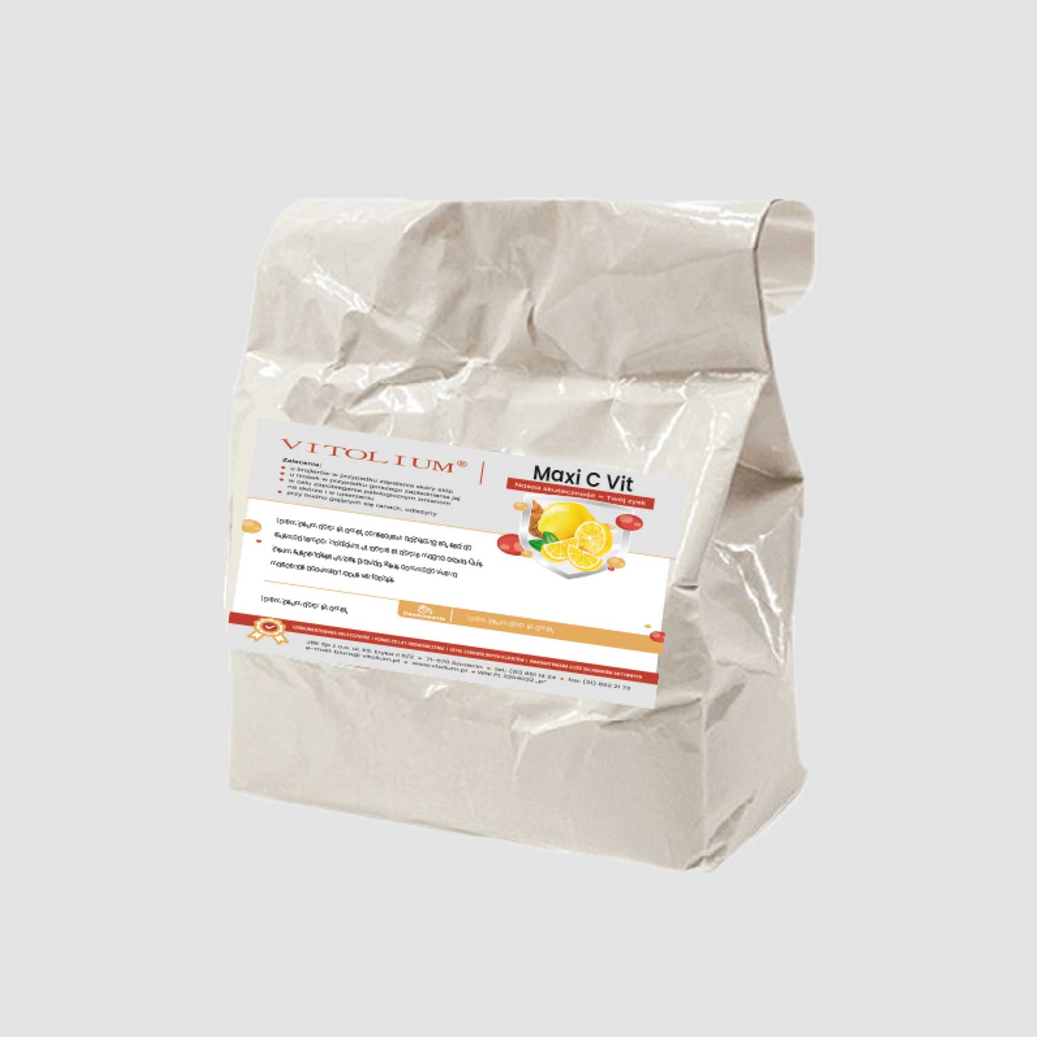 - Kwas L-askorbinowy (bioaktywna witamina C) – 99%